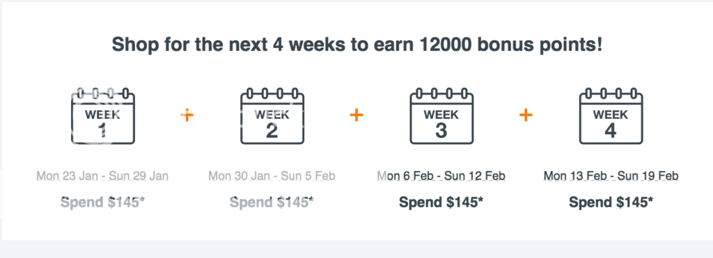 Today, suddenly I get the Spend $100 a week for 4 weeks for a measly 8000 points....