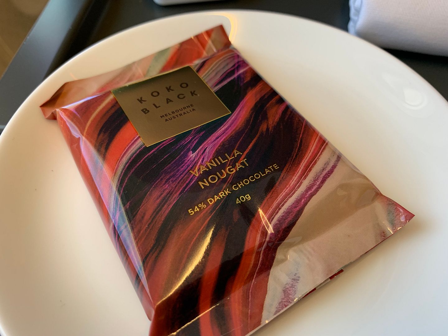 Last week Syd to Mel, duck dumplings with a chilli sauce and bok choi, with the Koko Black vanilla nougat (dark) chocolate. Very tasty and quite generous serve
