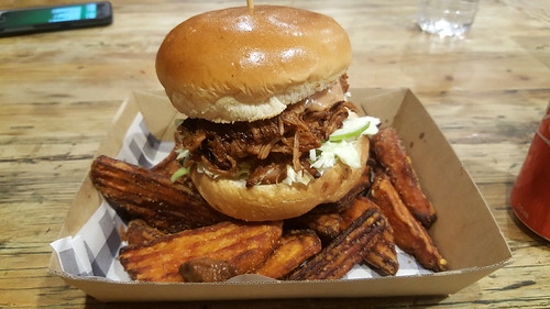 El Burger on Sunday, I went with the pulled pork with apple slaw and sweet potato fries.